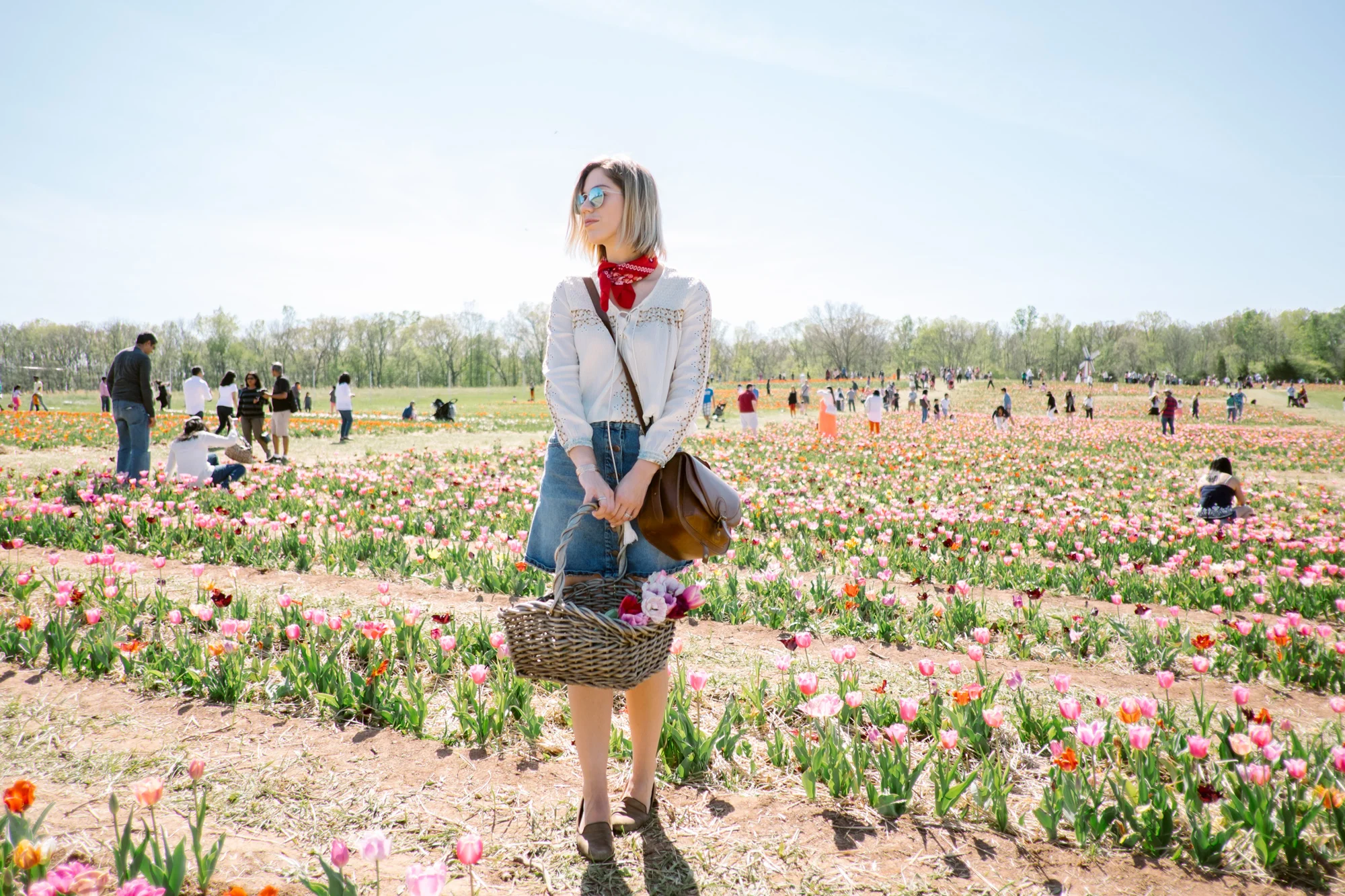 This past weekend we went to one of the cutest little spots in Northern Virginia - the tulip field at Burnside Farms! I had been years before, but since then, they’ve moved and expanded! The field is expansive, you guys. This flower child was one happy camper.