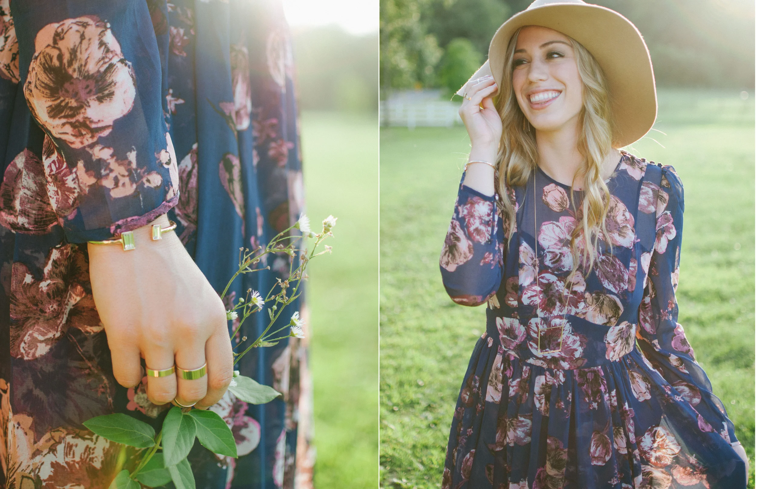 I am SUPER excited to finally share a special project I've been working on for the last few weeks! I've teamed up with Free People to bring you a fun fall lookbook featuring my favorite fall trends - florals, hats and dainty gold jewelry.