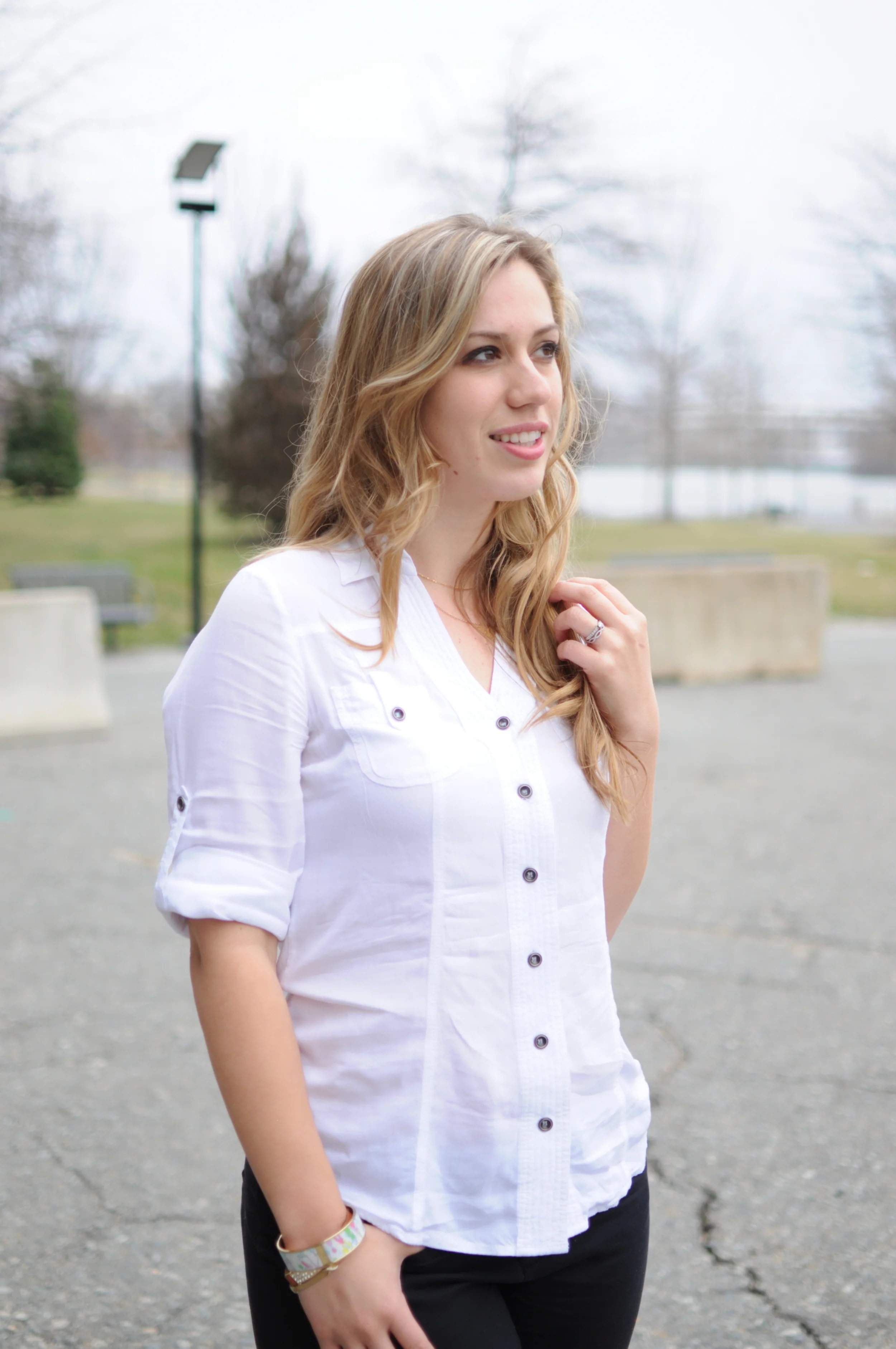 Last weekend, I spent the day taking behind-the-scenes photos for a fun shoot in Georgetown. I wanted to look stylish, but also mobile. I ended up with a soft white button up with stretchy black slacks. While my Frye boots have been my go-to lately, I can't wait to put these sore puppies in sandals in just a few short days and be rid of my winter clothes! Who's with me?!