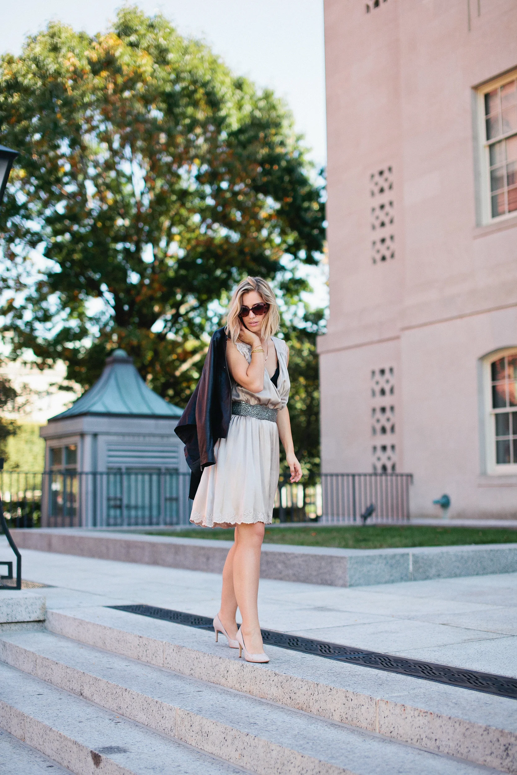 Wearing SUNO dress via Snobswap c/o, http://bit.ly/1RIhhXz, Anthropologie sequin belt (similar), Free People bralette c/o, J.Crew pumps (nude patent leather version), Sophie Blake necklace, Jill Michael bracelet via Rocksbox (use code JULIENBFF for a free month)