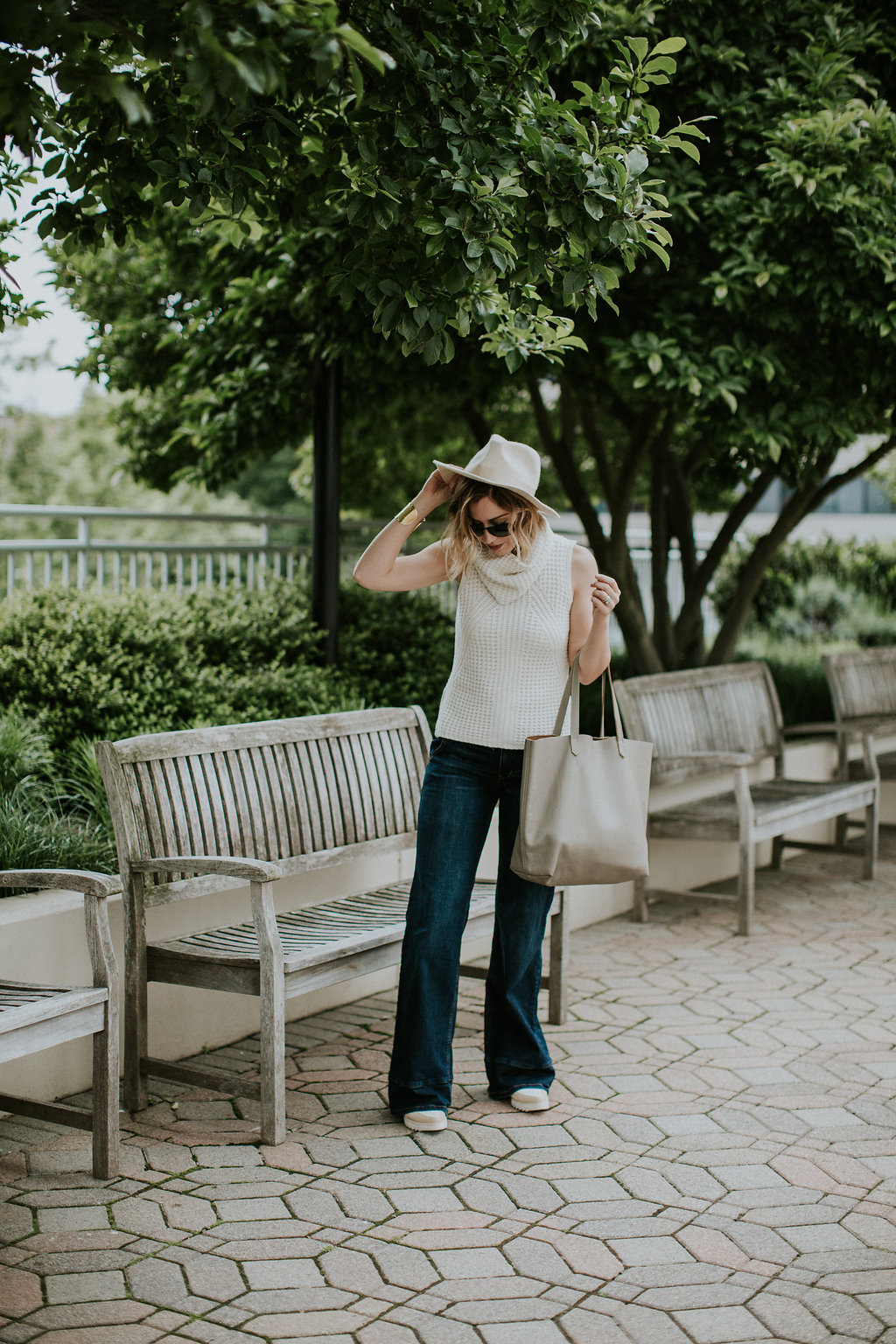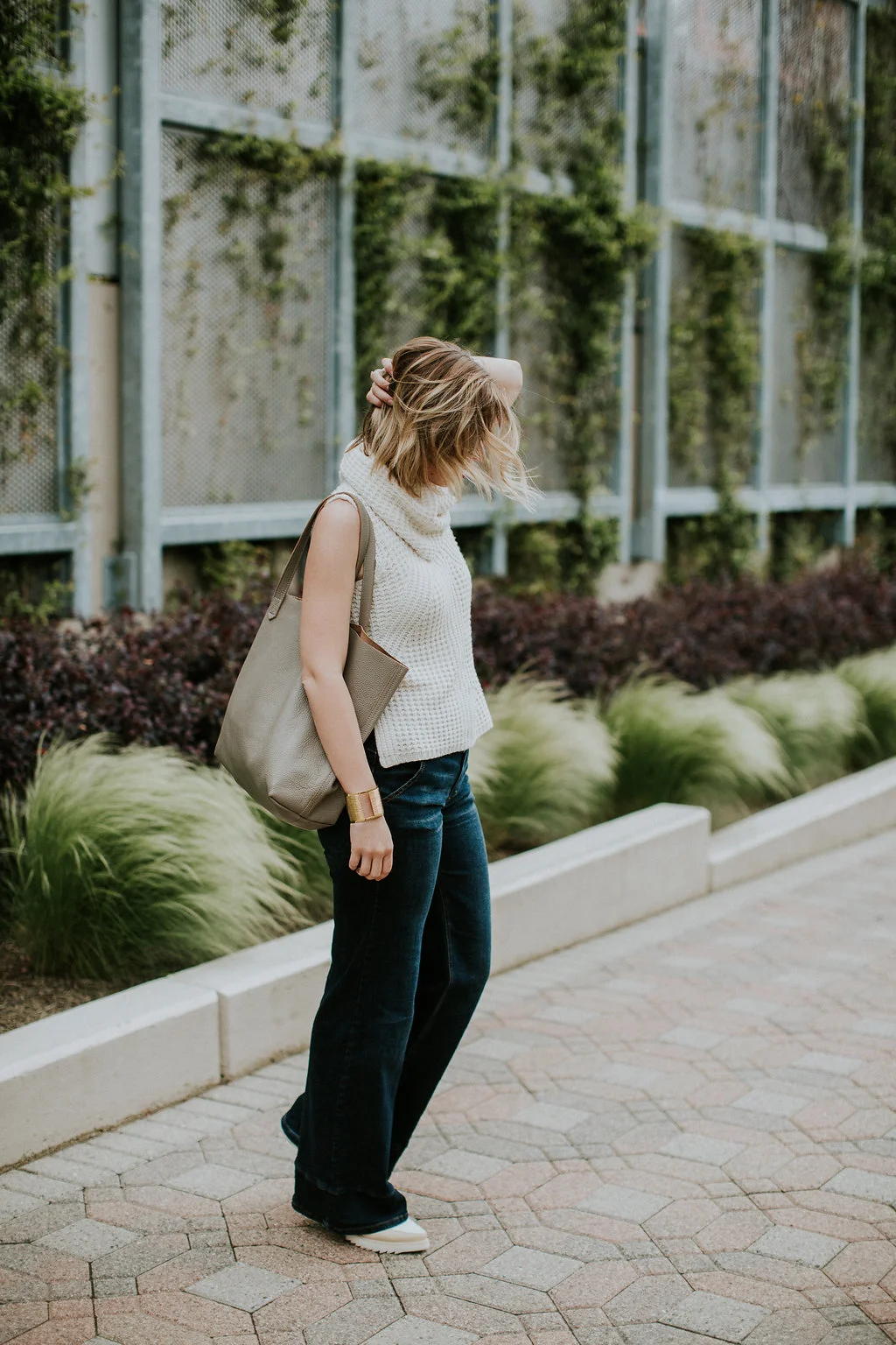 Wearing Free People jeans, Banana Republic vest (on sale, last seen here), VETTA cropped blouse (last seen here), Classic Leather Tote from Cuyana c/o (PS this bag holds my life - I use it every single day), Ukies flats c/o, Topshop velvet choker
