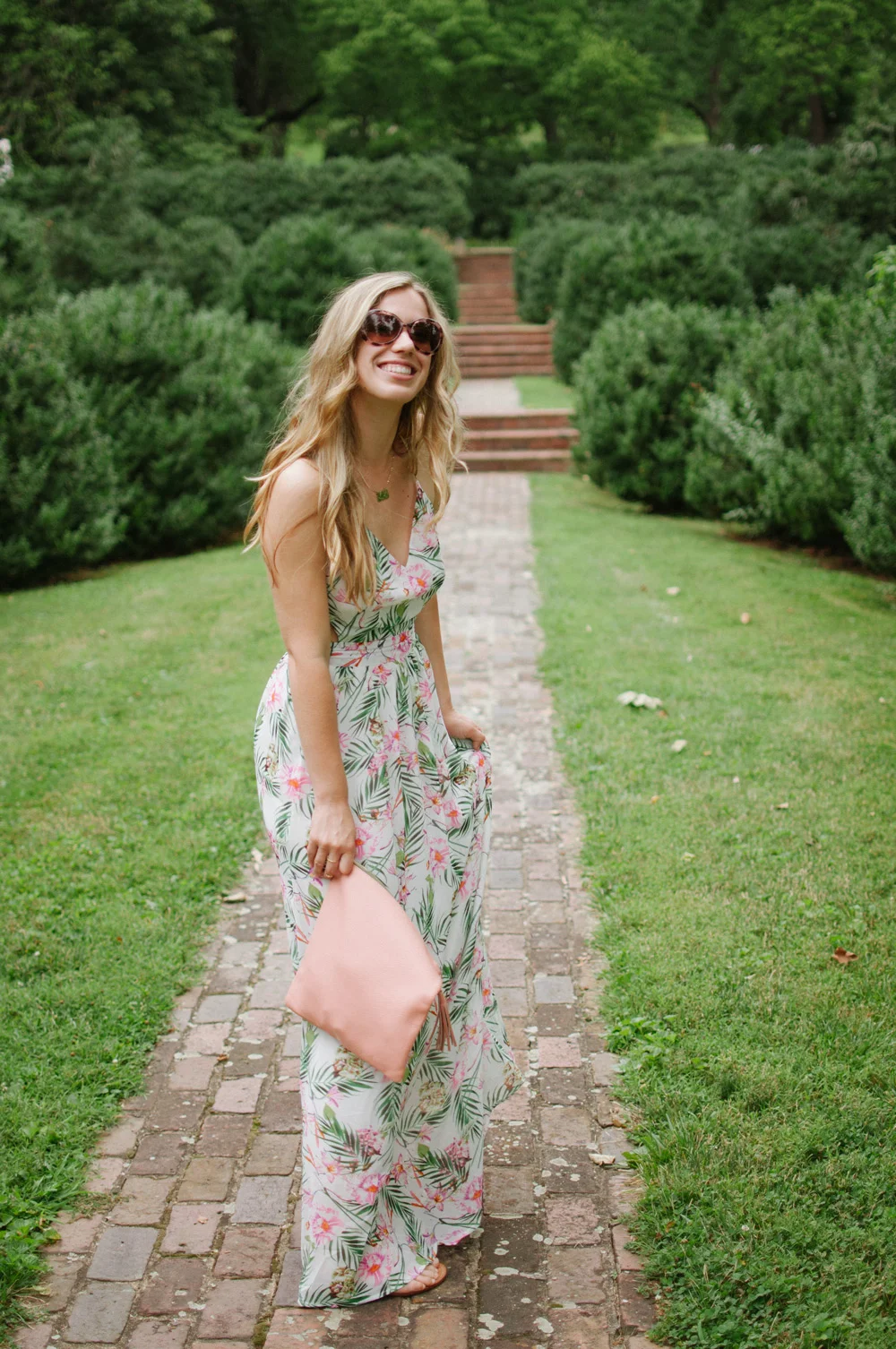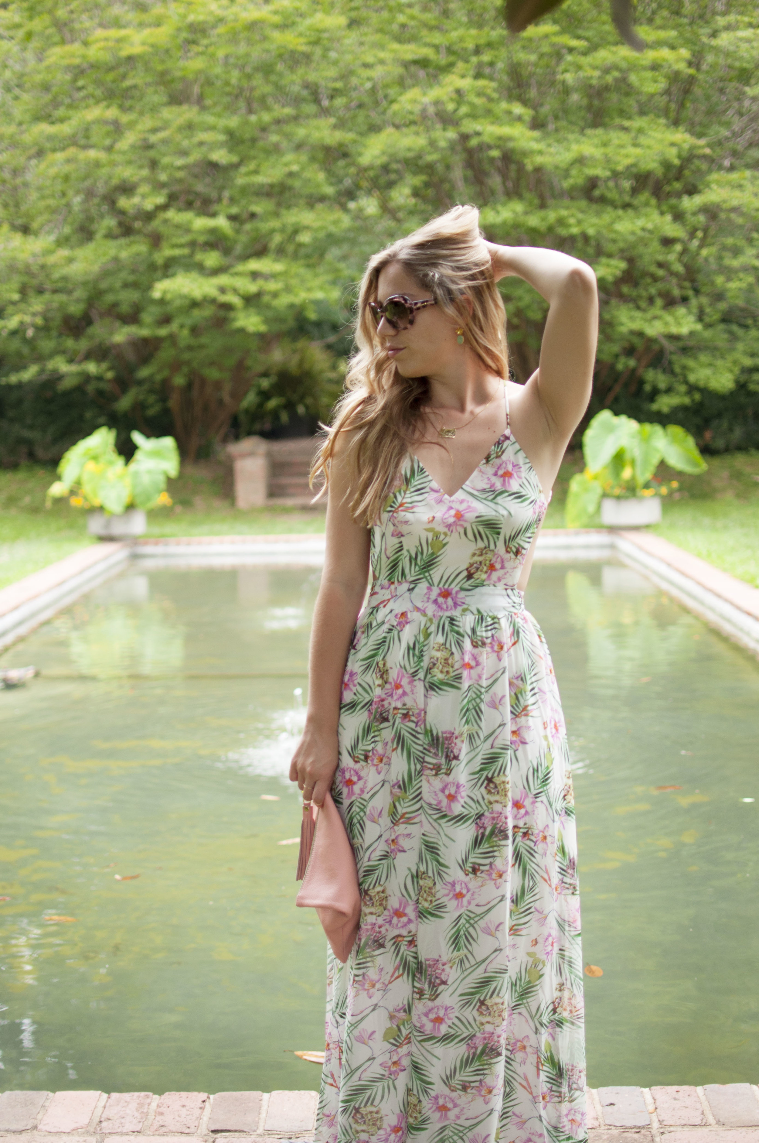 In Fashion Tags SheInside, Tropical maxi, Garden party attire, Kate Spade Sunglasses, Three Jane NY, K.Slademade