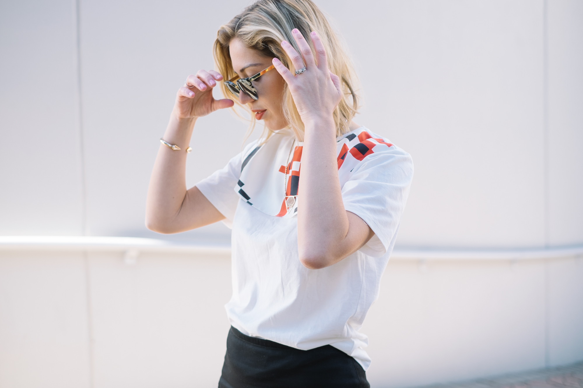 Wearing Ksenia Schnaider dress via The Odivo c/o (sold out but this shorter version is identical!) Finders Keepers pumps (similar), Sophie Blake cuff