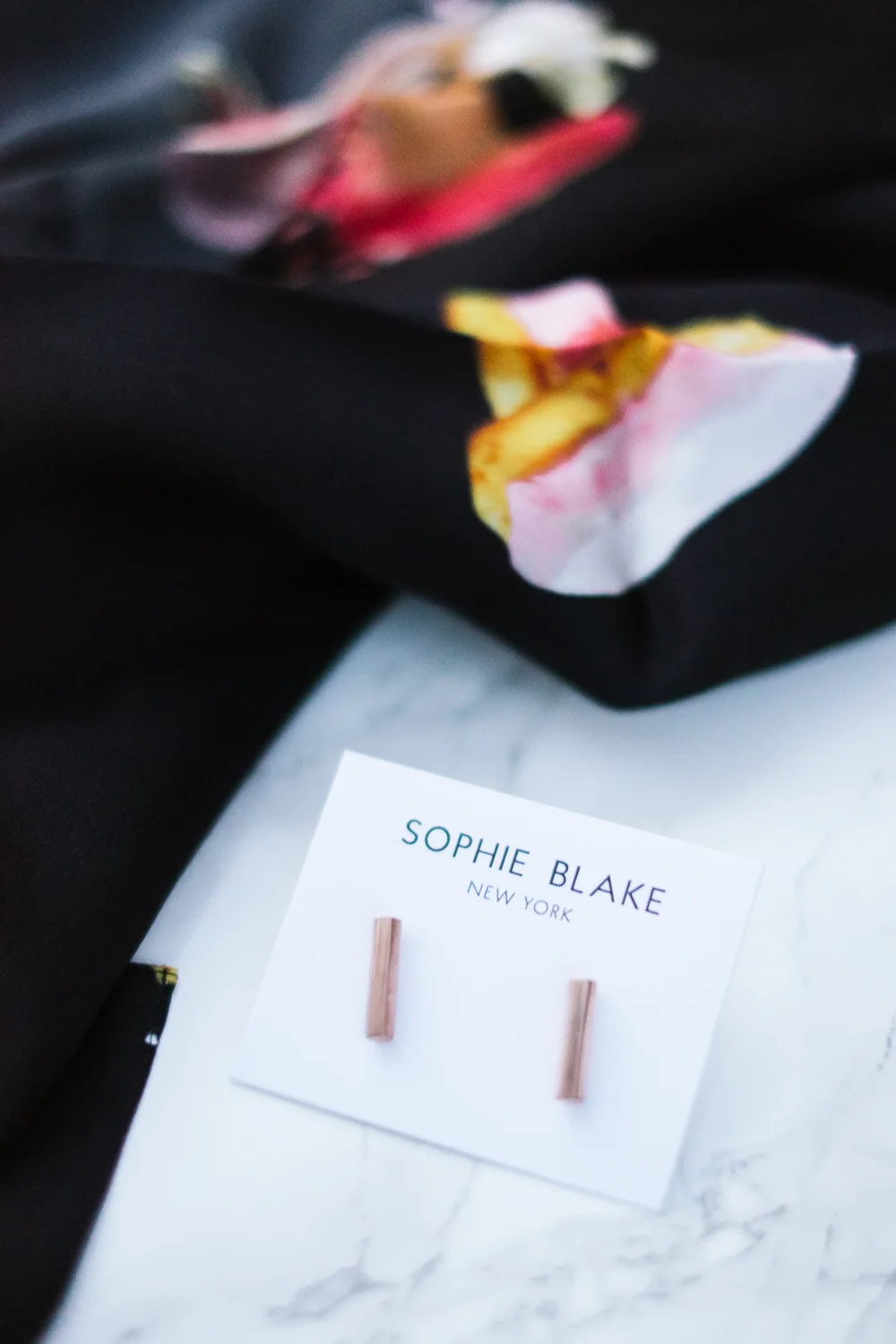 I’m also giving away these insanely beautiful rose gold bar earrings from my babe Sophie Blake! And even though I don’t like to play favorites, Sophie Blake is, hands down, my favorite jewelry company, ever. She makes her pieces by hand and she’s so in-tune with making jewelry that stands out, but is also super wearable. I wore this style constantly while I was in New York and am so excited for someone to win them!