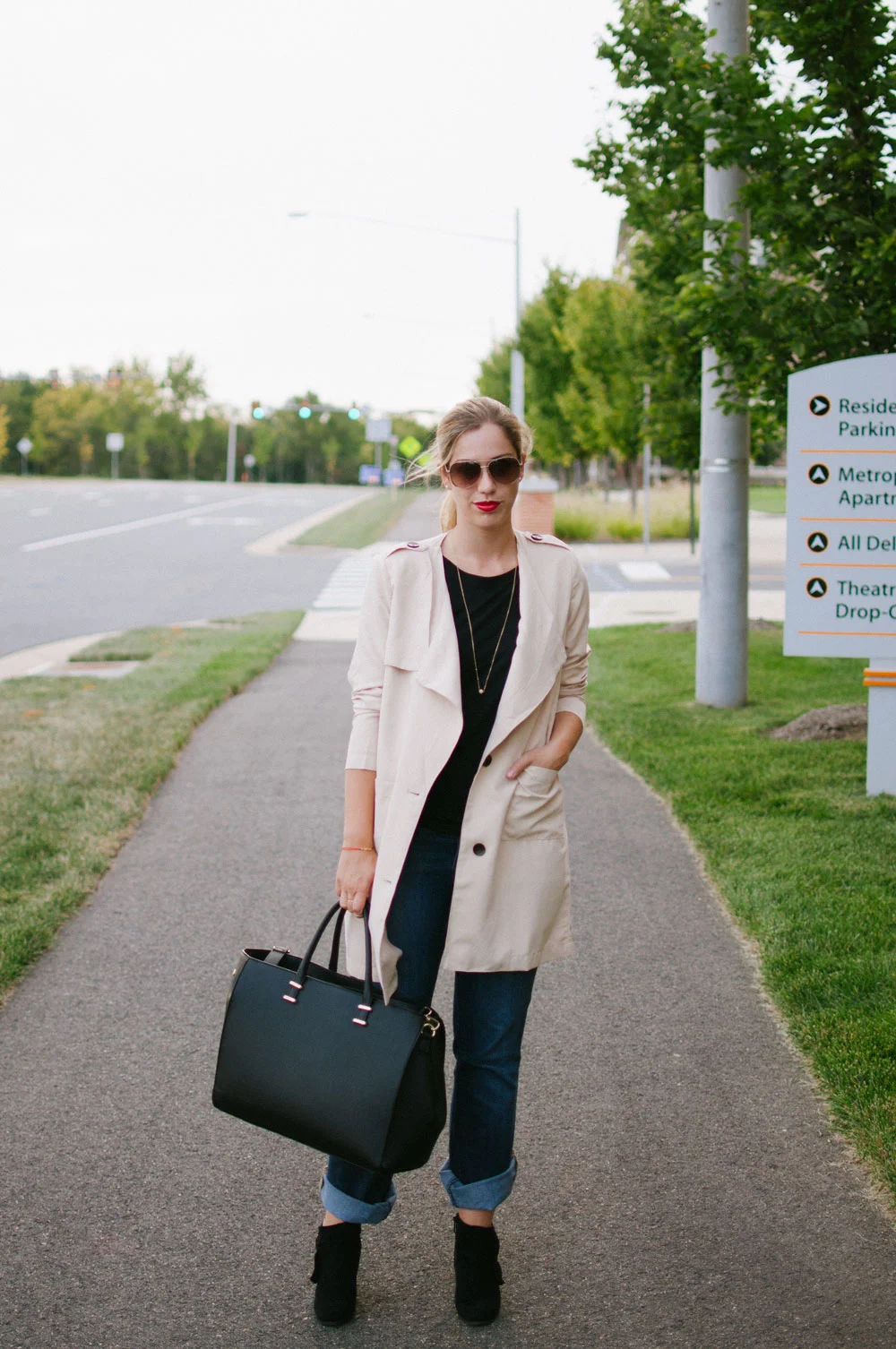 My biggest concern, honestly, was the color. It looks pinkish online, but once it arrived, I was happy to find it to be more cream colored in person, with a really beautiful buttery texture. Is it Burberry? No. But it is almost just adorable and THE PRICE, YOU GUYS?! It’s basically free. I love that it’s not a heavy jacket either, perfect for fall!