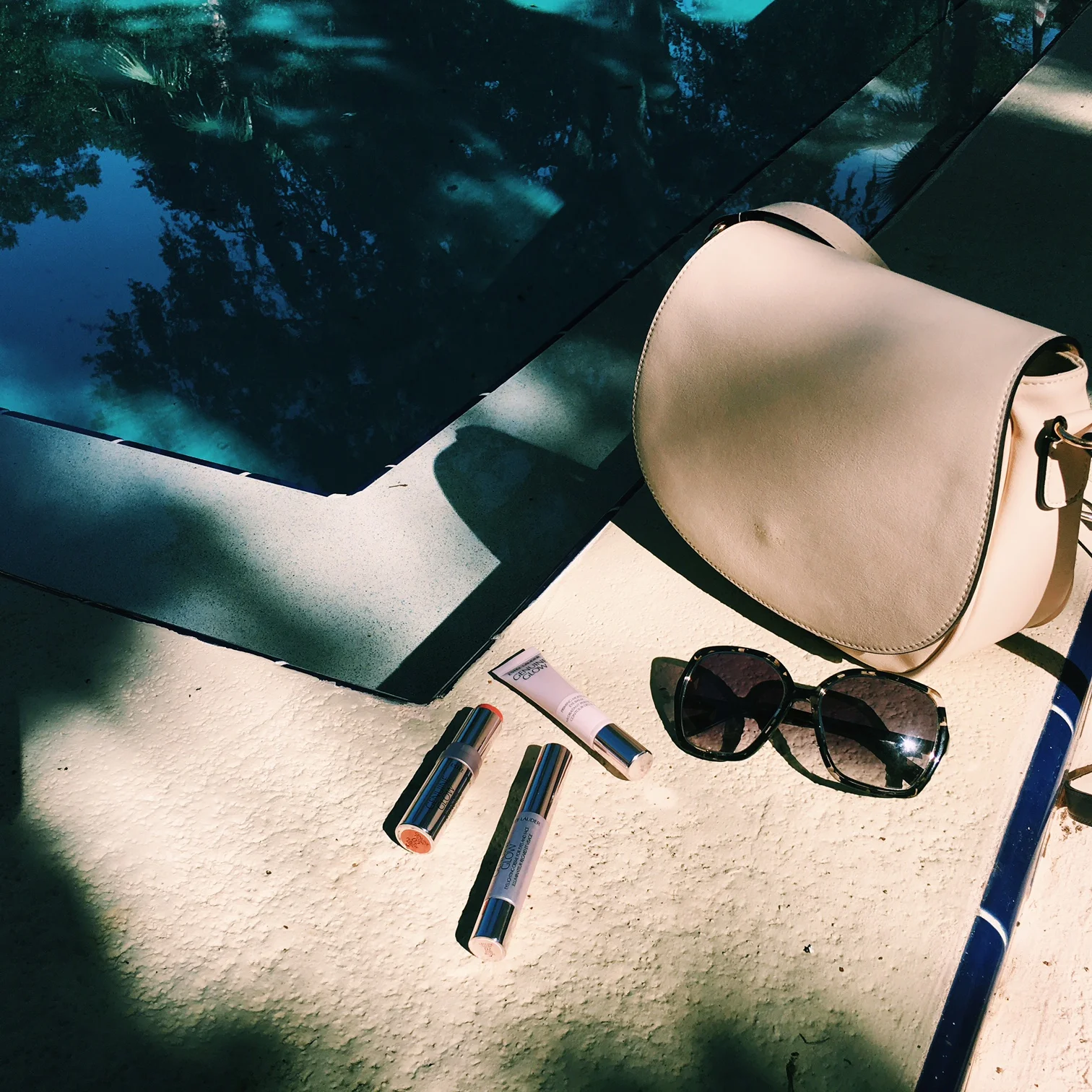 Genuine Glow collection, exclusively at Blue Mercury // Ditto sunglasses (use code ITSJULIEN for a free month!) // Angela Roi bag