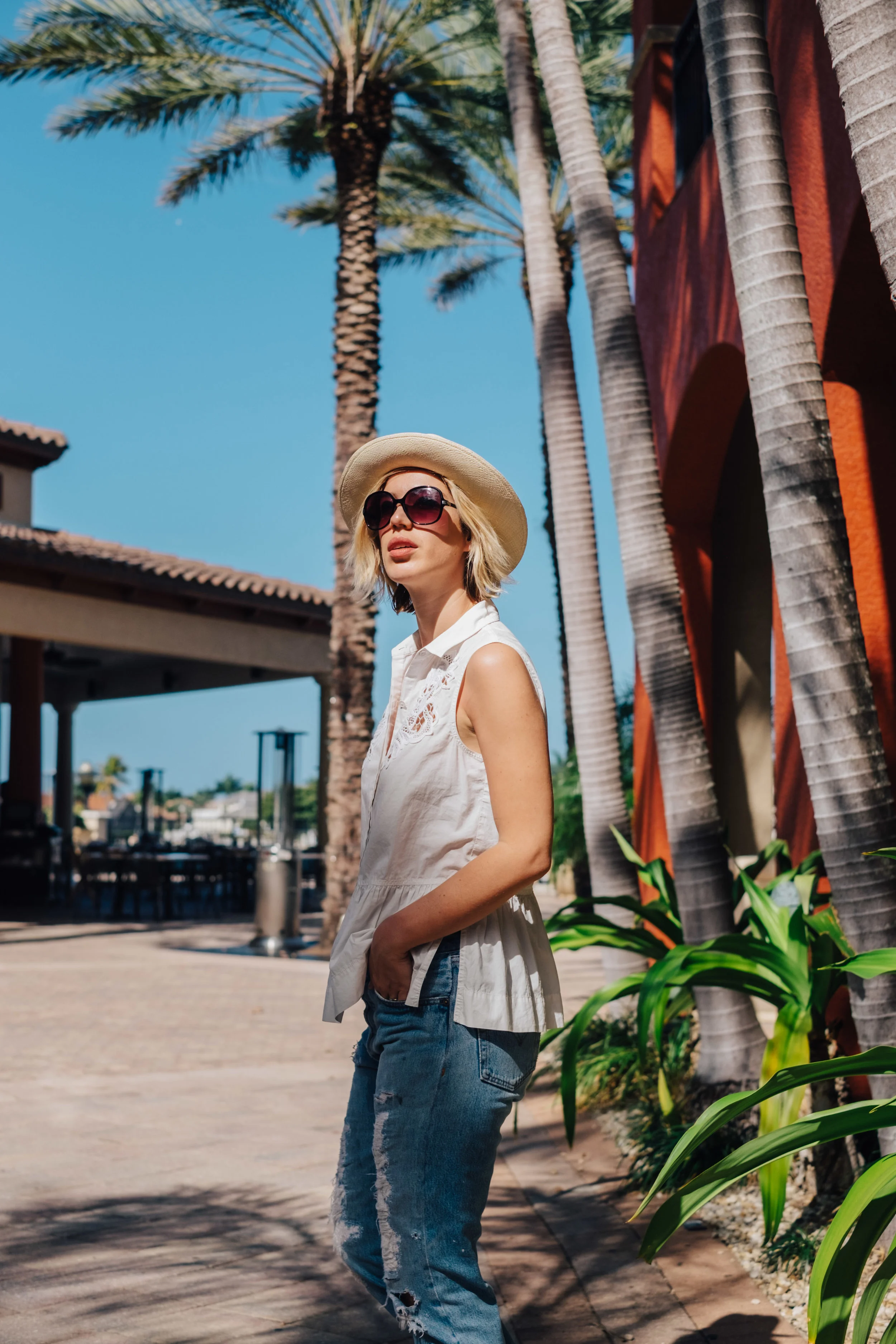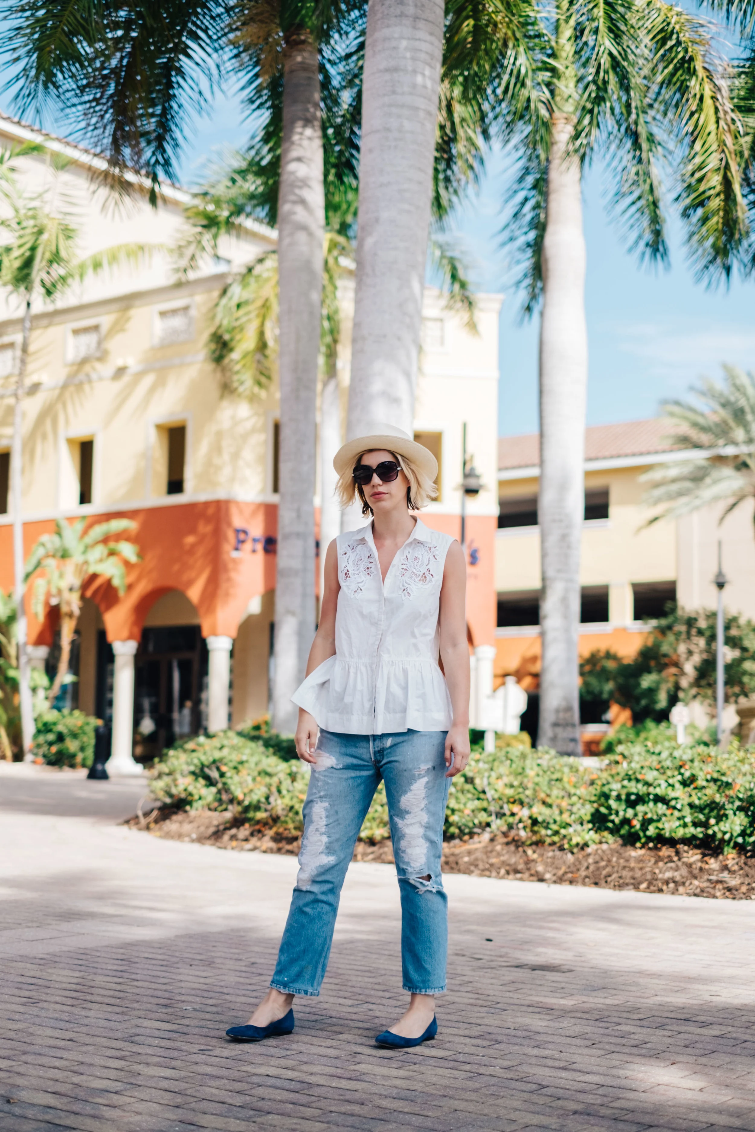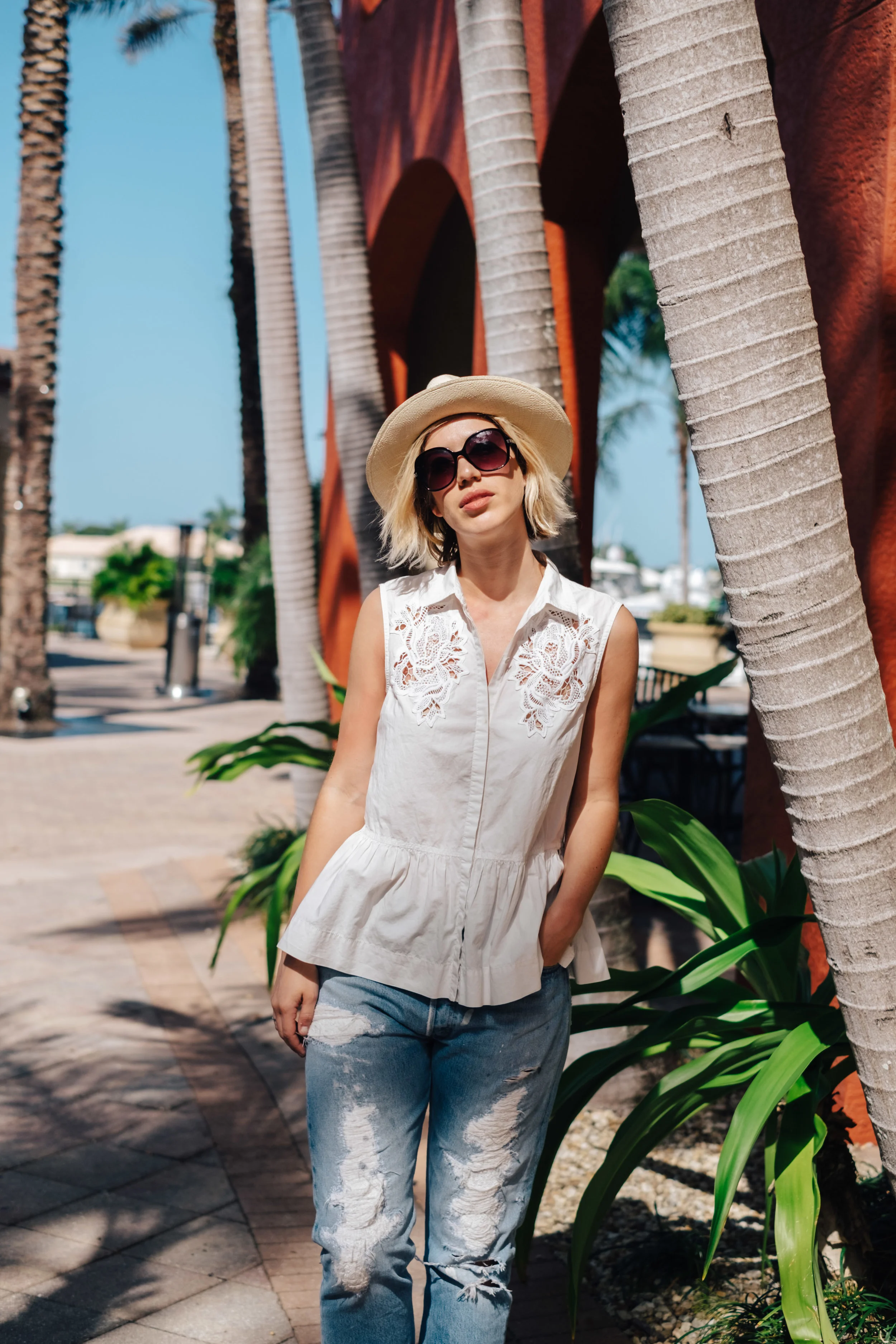 Anyway, as an ode to my deep desire for a tropical vacation, I’m sharing these photos from my last trip to Florida. I rented this Rebecca Taylor blouse from Rent the Runway and sported my face Re/done denim for a coffee date with the hubby one morning while on Marco Island.