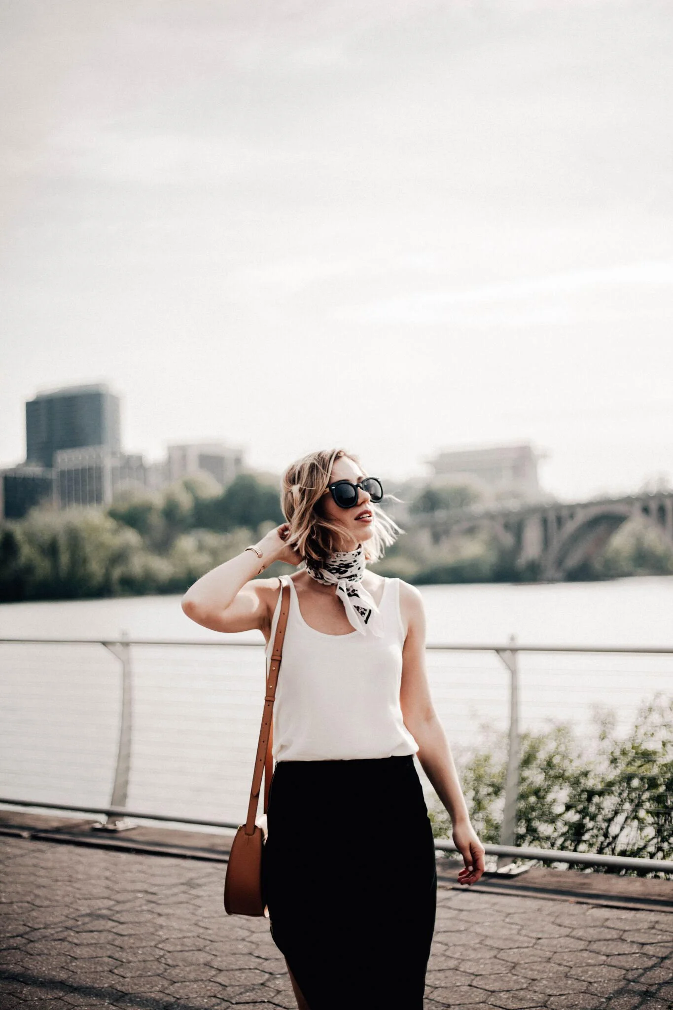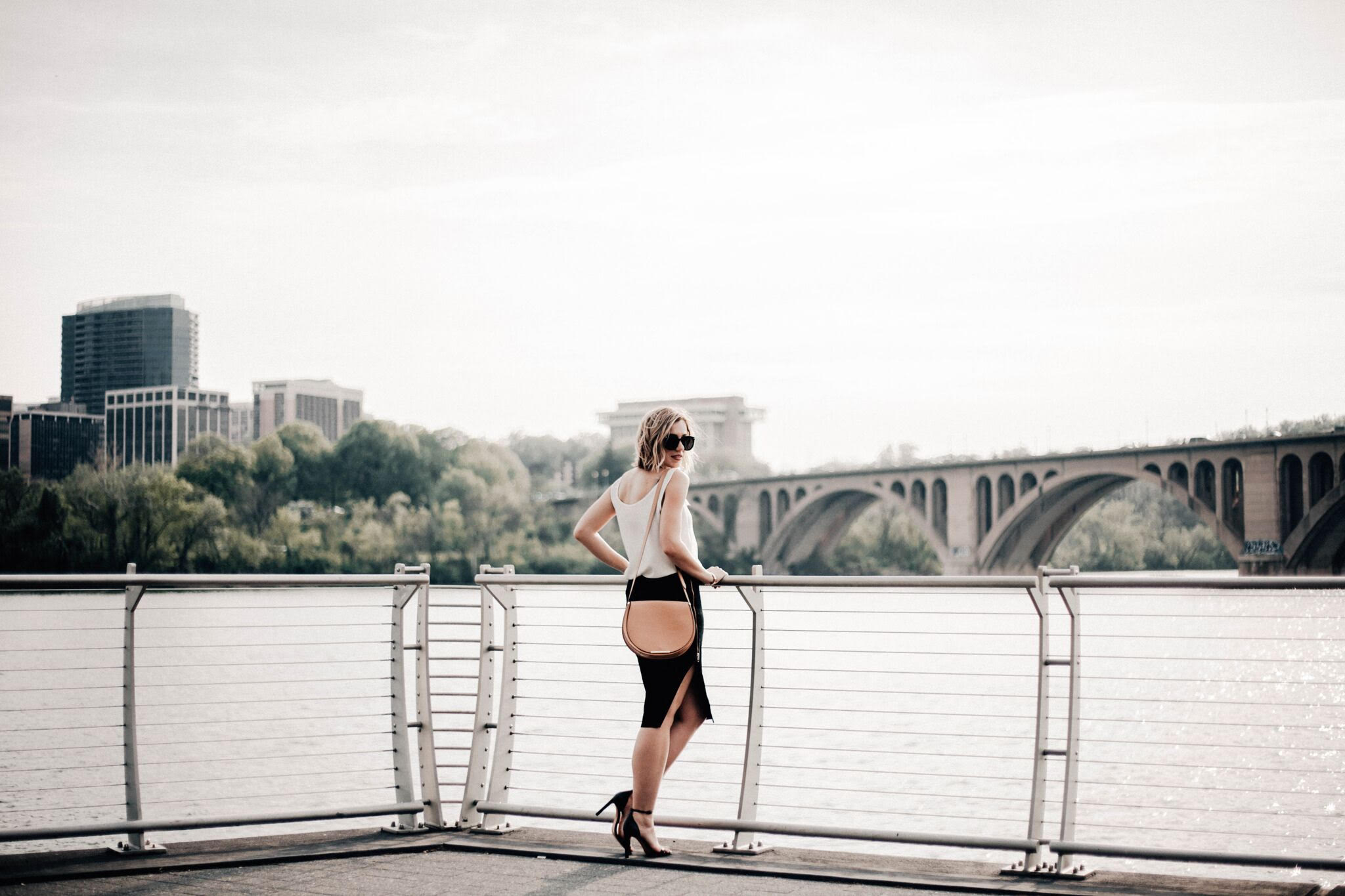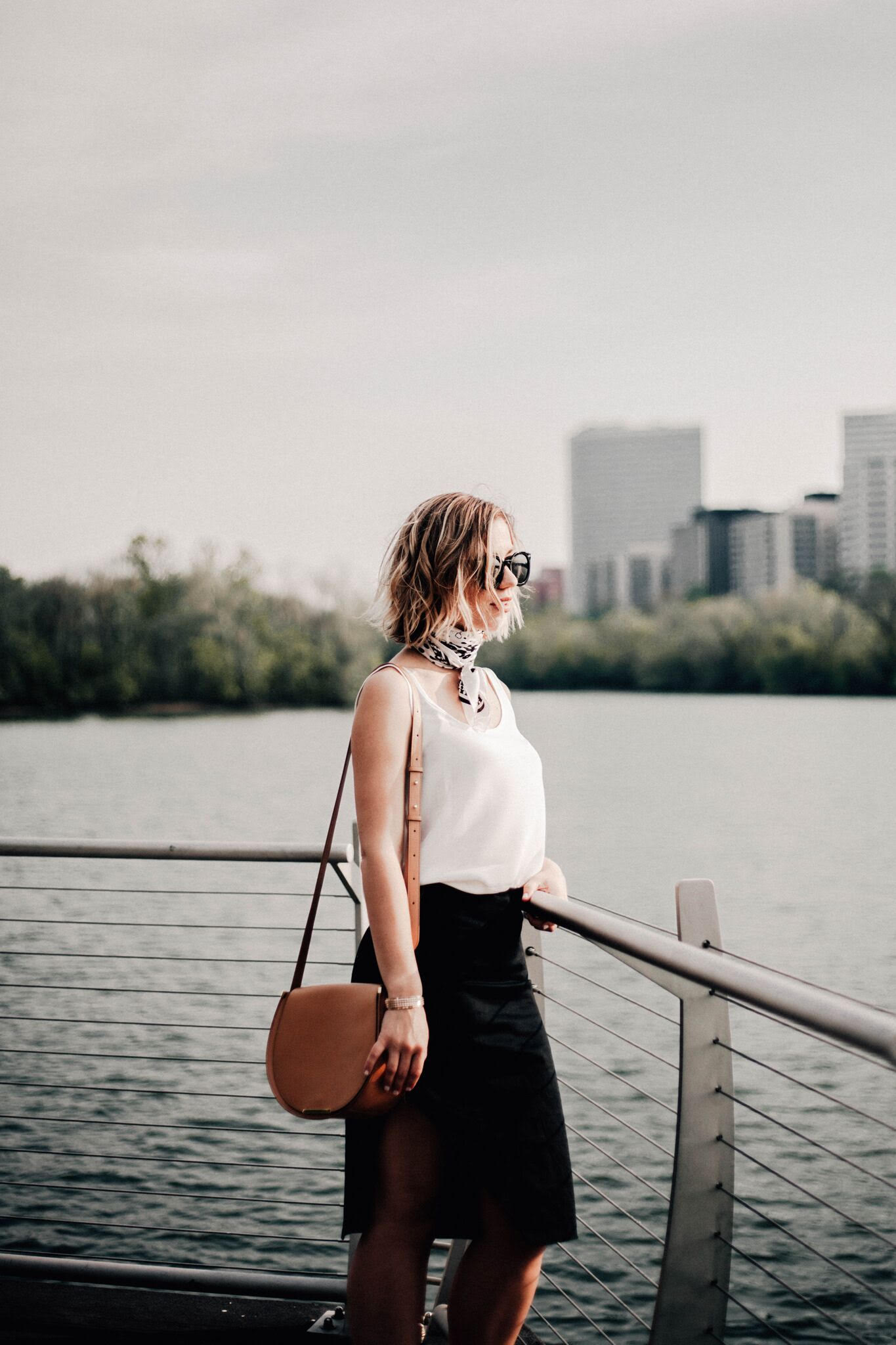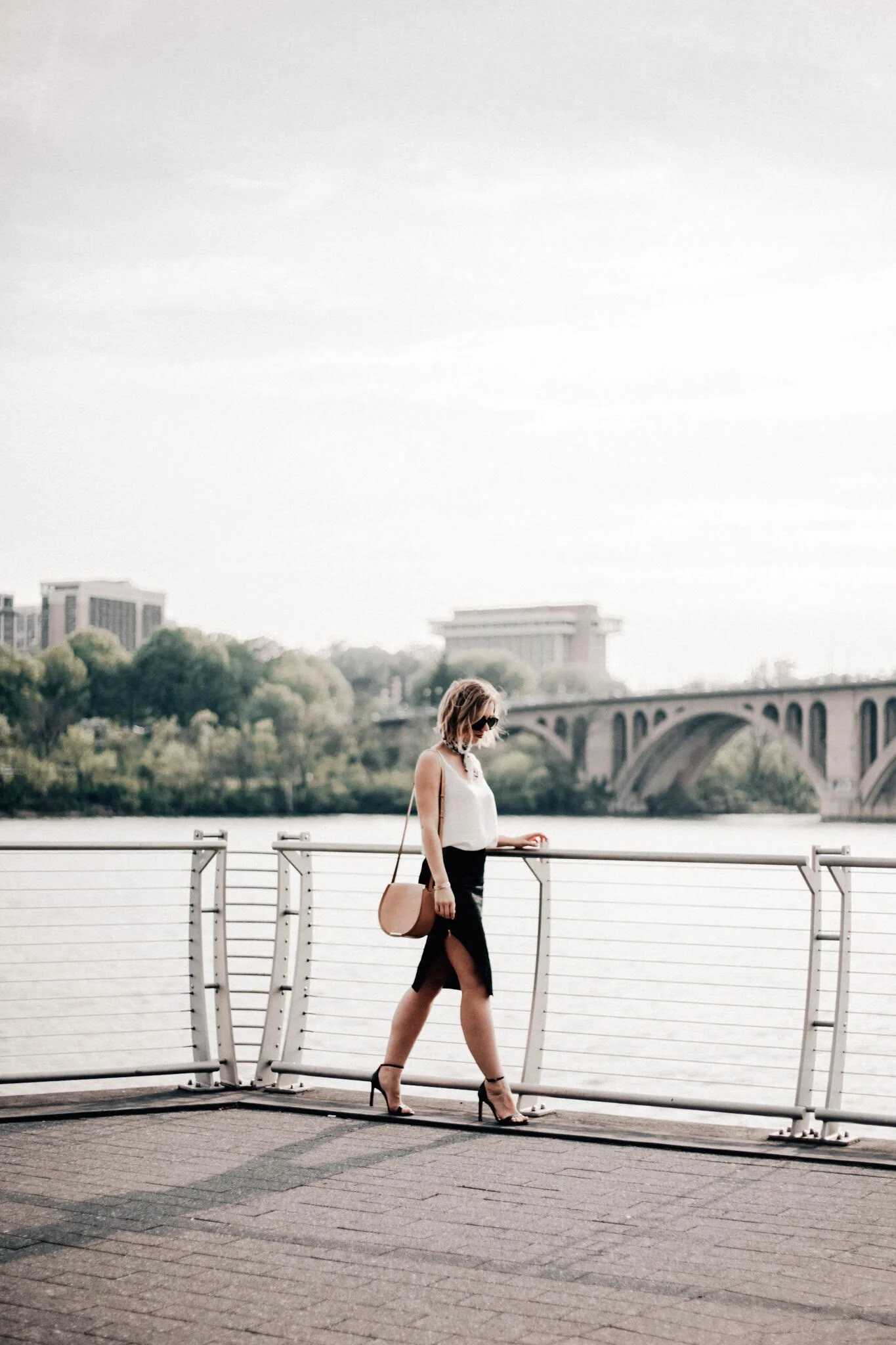 That's why I love the Cuyana Georgetown store. Everything is laid out so beautifully and I always find something I love when I visit. This shoot was done before one of their summer parties by my good friend, Luke! I wore my white Cuyana silk tank (a staple in my closet!) and Cuyana saddle bag and paired them with an Erika Schrieber skirt and Banana Republic sandals.