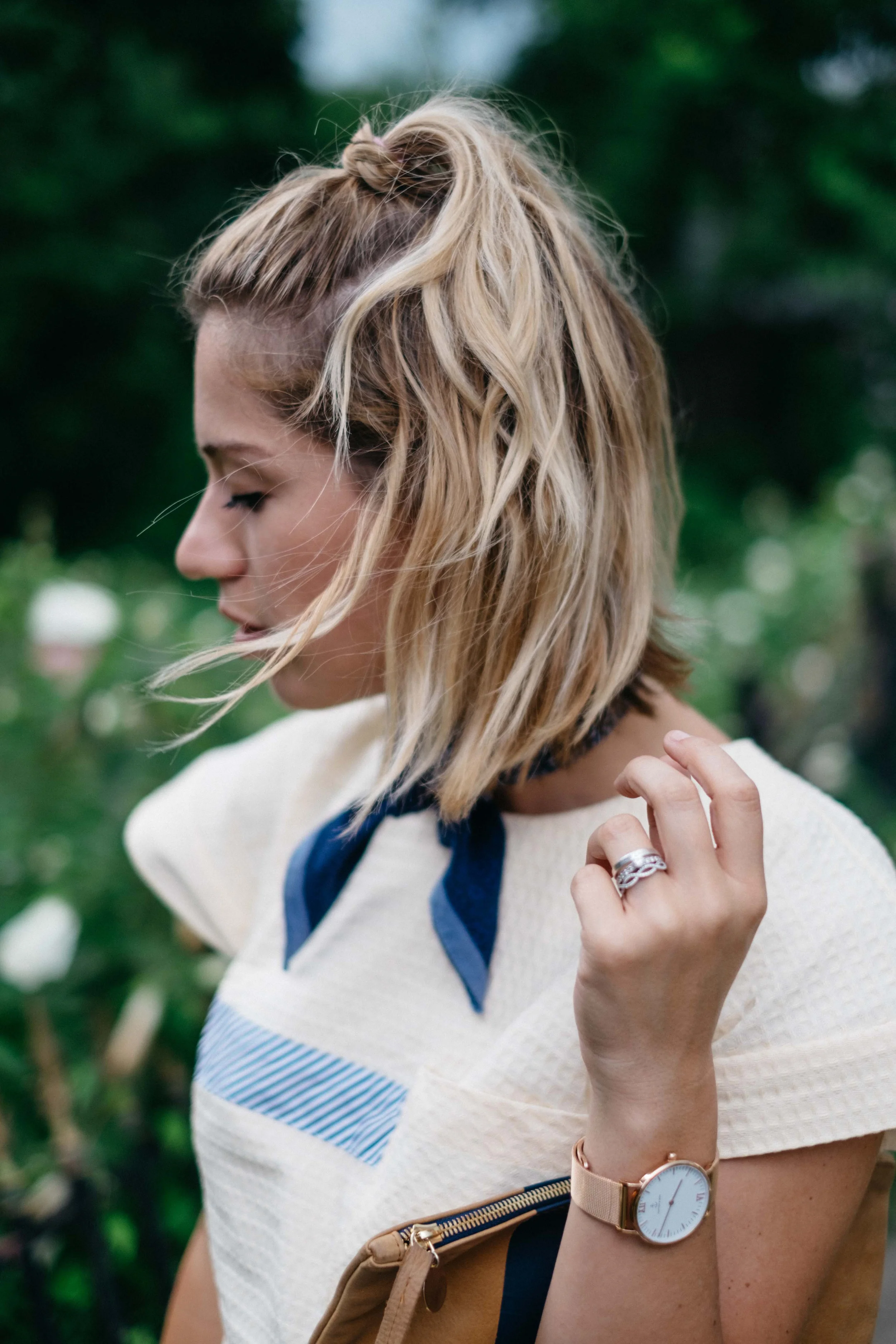 I paired the dress with a classic pair of pumps with a fun fabric twist, also from Banana Republic. These are blush calf hair - another love at first sight moment. Best of all? They’re actually comfortable (they don't call it the 12 Hour Madison for nothing!) At about 3.5 inches, the heel is just the right size that it flatters your leg but doesn’t make it impossible to walk. (A must-have in my book!)