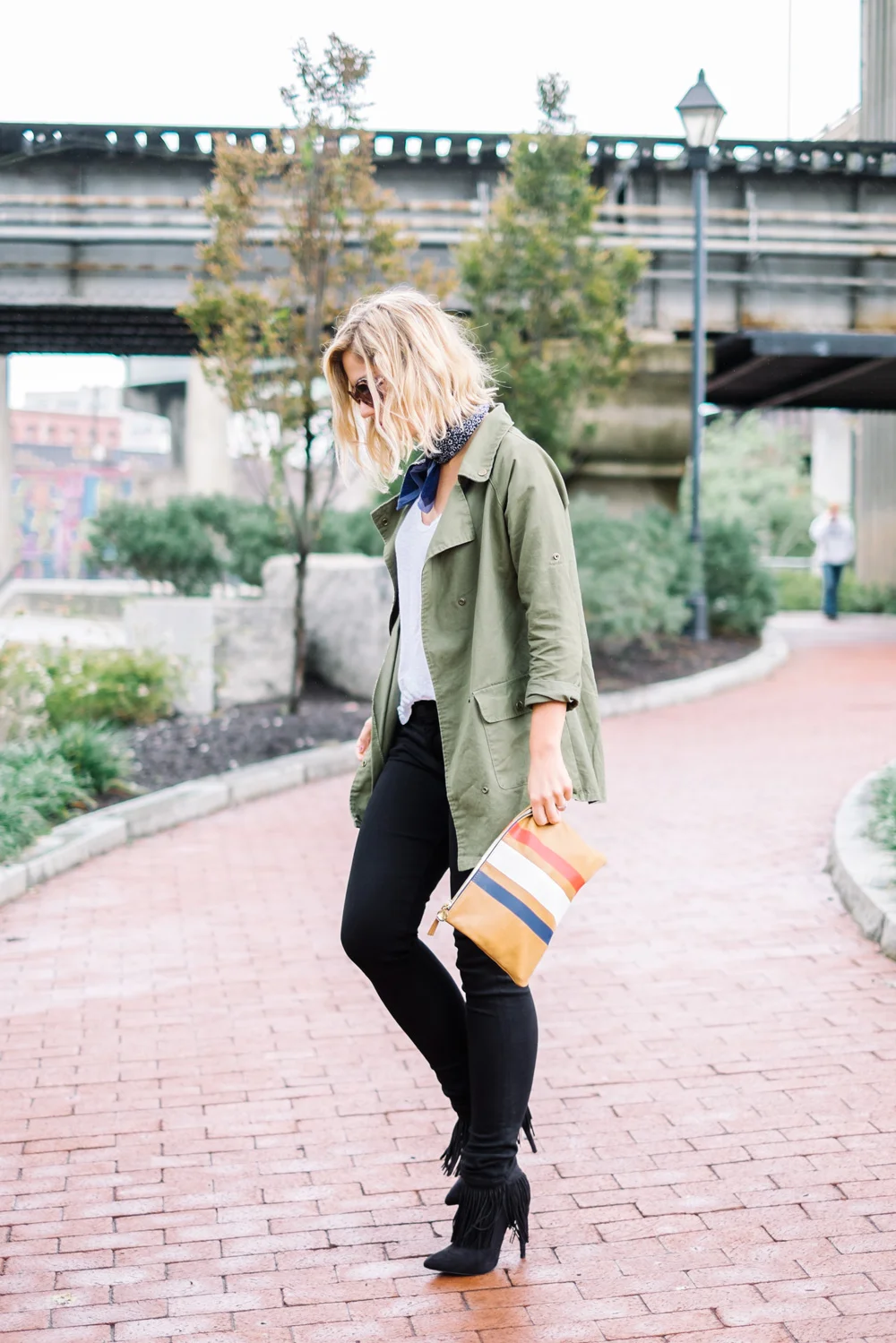 Also! Iβve been feeling extra sassy since getting my hair chopped and colored (ahem, hand painted) by the incredible Nadine Matar at PR at Partners on K Street. So I dressed up the black jeans/white tee look with these sweet fringe booties (these are sold out, but these are almost identical.)
