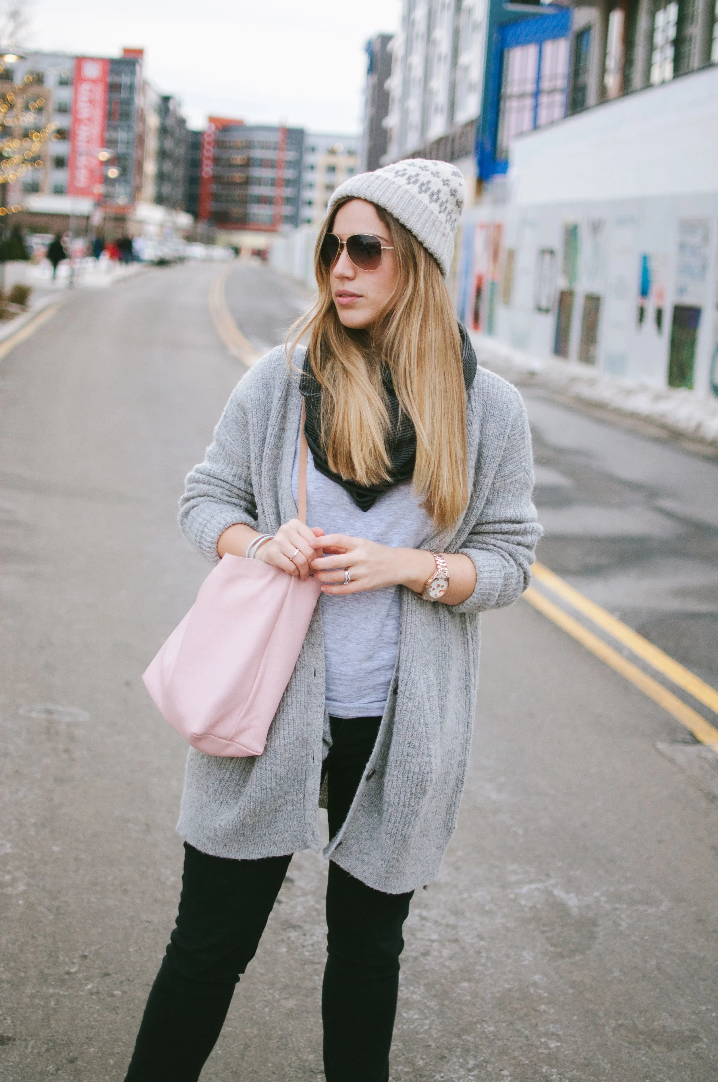 On Julien: Suit jacket and top (old), Banana Republic. Sweater, Zara (similar.) Pants, Anthropologie (love these textured ones!) Purse, H&M (similar.) Earrings, Hanuel c/o. Watch, Swell Caroline c/o. Ring, Vrai & Oro c/o. Boots, Impo Ochoa via DSW. Sunnies, Kate Spade (similar.)
