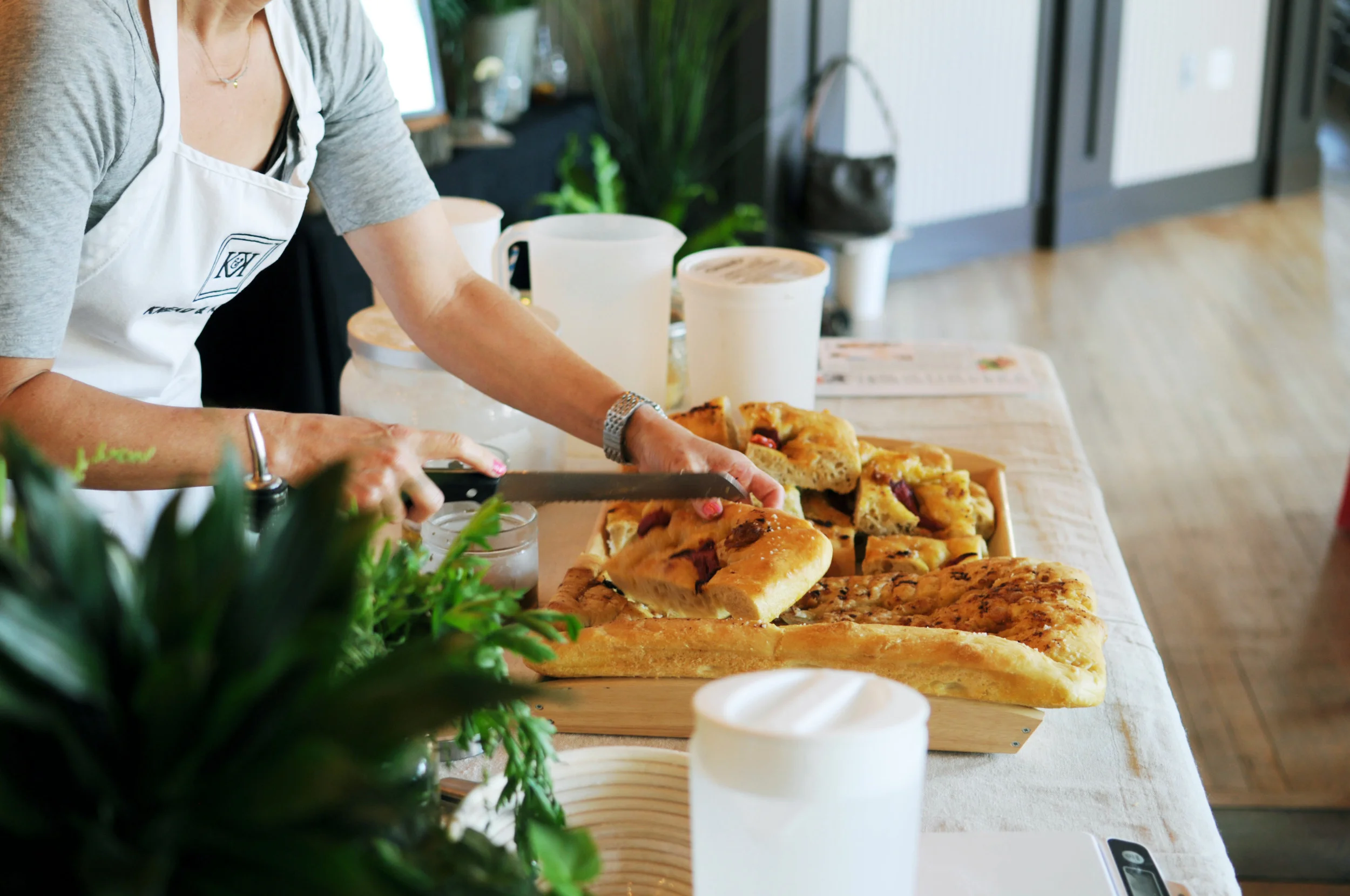 We started off learning to make focaccia bread (check out the recipe on Krystinβs blog) from Leesburgβs Knead and Know. Melissa Friend, our instructor, walked us through how to make the perfect dough (who knew dough wasnβt supposed to be sticky when rolled just right?!) and rewarded us at the end with a fresh baked pan of her own. She also teaches a class on making croissants that I will definitely be taking in the near future.